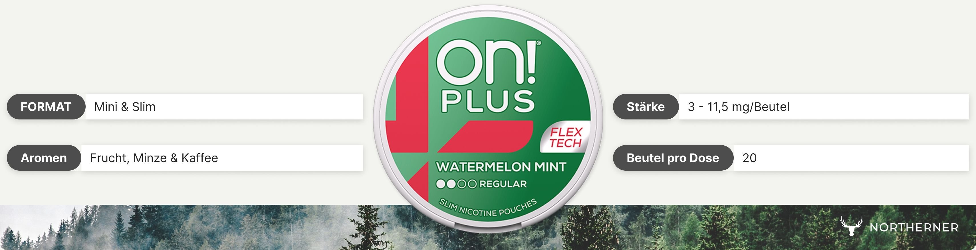On! Snus ist in Nikotinstärken von 3 mg bis 9 mg pro Beutel erhältlich, während On! Plus einen sehr starken Nikotingehalt von bis zu 11,5 mg Nikotin pro Beutel aufweist. Niedrigere Nikotingehälter werden besonders von Einsteiger:innen und Umsteiger:innen auf Snus geschätzt. Durch die verschiedenen Aromen der Nicotine Pouches kann die wahrgenommene Intensität bei den Nutzer:innen milder oder stärker ausfallen.