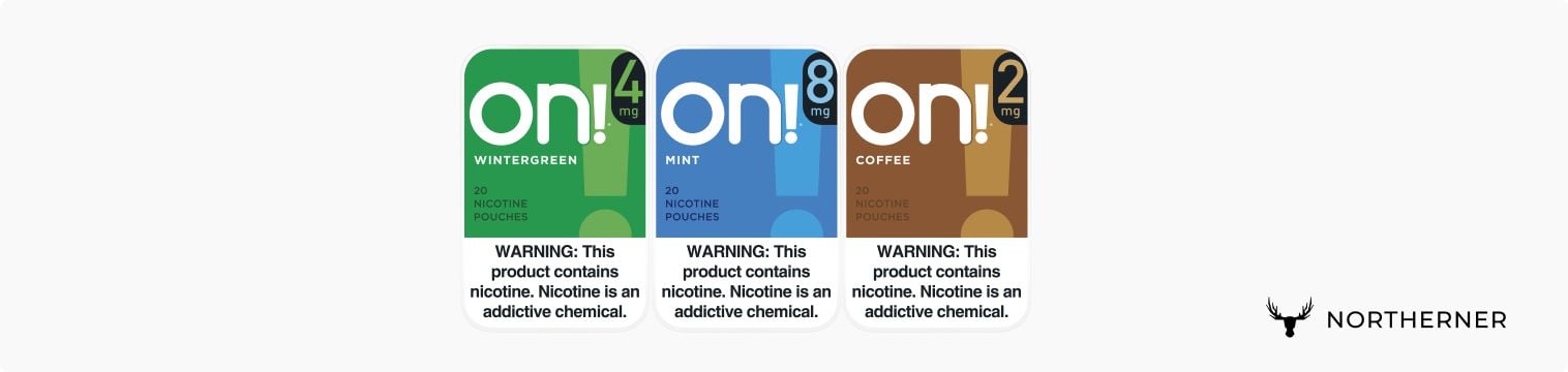 - On! offers a large strength range—starting at 2mg and going up to 8mg—in a dry, mini pouch format.