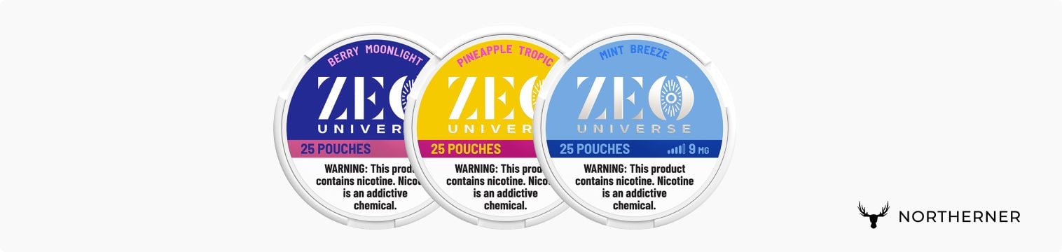 - ZEO Universe is a newer option that delivers high moisture, long-lasting flavors, and 25 pouches per can—available in strengths up to 12mg and formulated with tobacco-free nicotine.