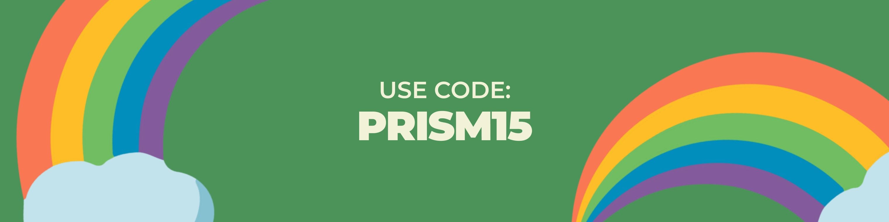 Use code Prism15 for $15 off purchases of $45 or more. 100 coupons available. The discount code can only be applied ONCE per customer.