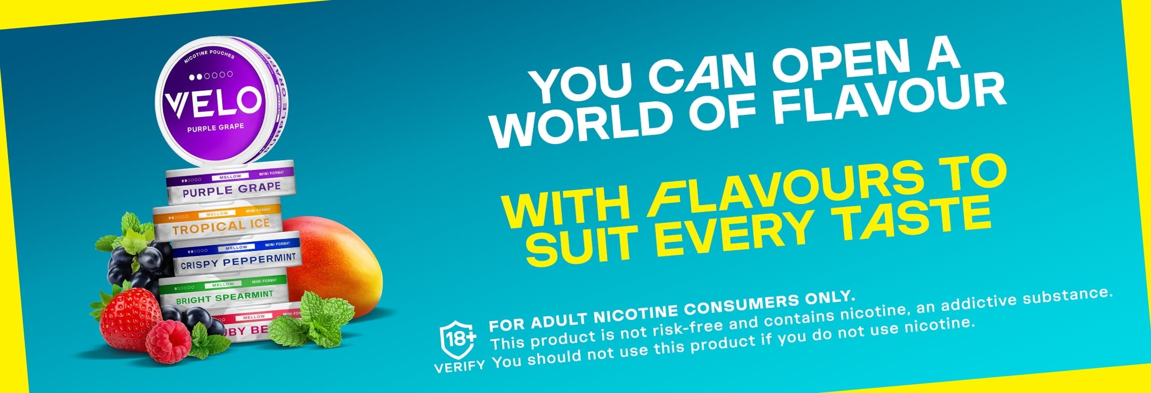 Discover VELO nicotine pouches, for adult users seeking a tobacco-free, nicotine experience. Available in a wide range of flavours and strengths, VELO (sometimes called VELO snus) is a bestselling pouch brand in the UK.