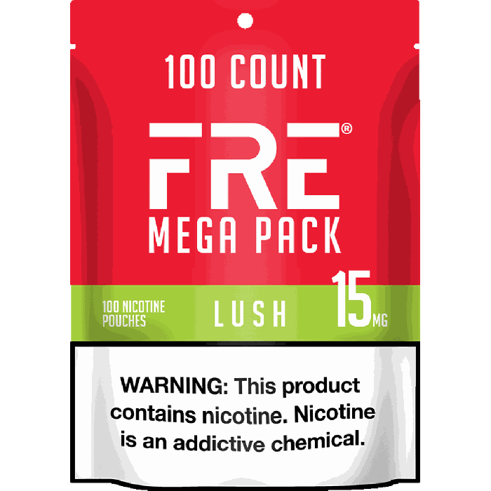 FRE's Lush 15mg Mega Pack contains 100 tobacco-free pouches in a convenient, resealable bag. Each pouch has 15mg of synthetic nicotine and features a blend of fruity flavors in a slim format with a semi-moist texture. These Extra Strong pouches are made for oral use only and can be used at home or on-the-go.
