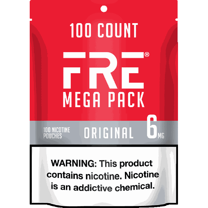 FRE's Original 6mg Mega Pack contains 100 tobacco-free pouches in one convenient, resealable bag. Each unflavored pouch has 6mg of synthetic nicotine and features a slim format with a semi-moist texture. These pouches are made for oral use only and can be used at home or on-the-go.