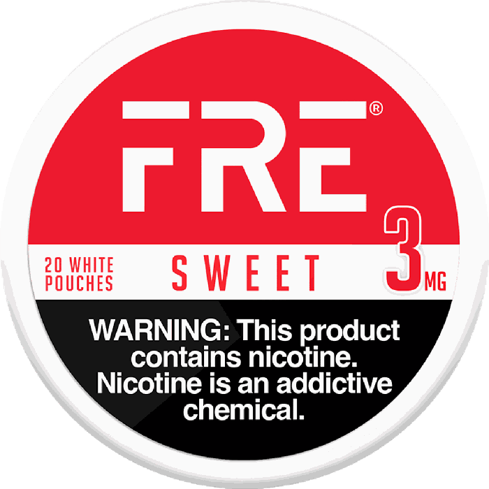 FRE Sweet 3mg nicotine pouches provide an option for those seeking a tobacco-free nicotine experience. These slim-format pouches contains synthetic nicotine, delivering 3mg of nicotine per pouch and classified as less intense. For those seeking a different nicotine intensity, this option is also available in 6mg, 9mg, 12mg and 15mg strengths. Designed for oral use, these pouches are spit-free, minimizing saliva production compared to traditional smokeless tobacco products. Each can contains 20 pouches, available for purchase individually or in multipacks of 5, 10, 25, or 50.