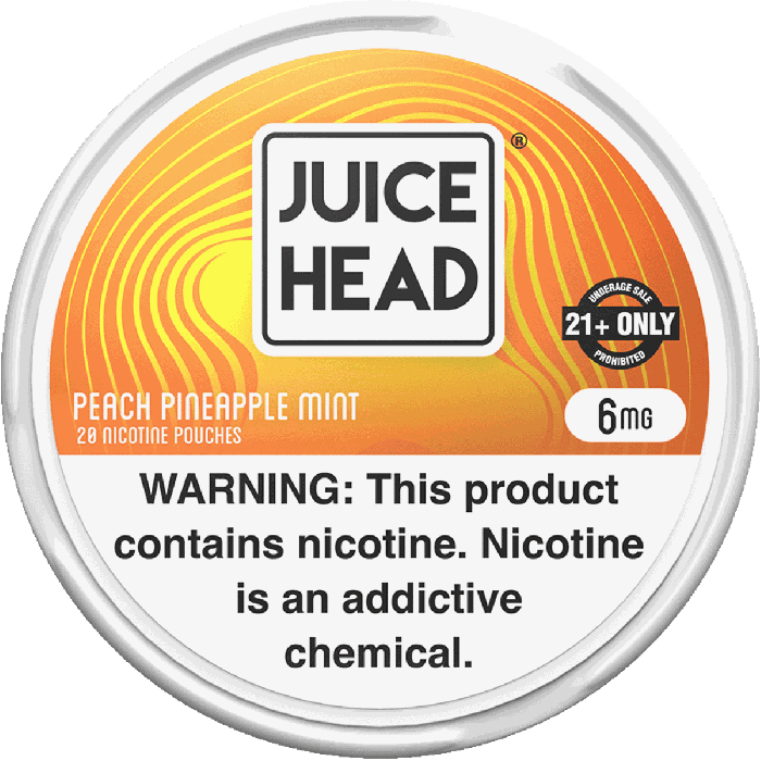 Juice Head Peach Pineapple Mint 6mg is a tobacco-free nicotine pouch with regular strength nicotine content. Manufactured by Streamline Group Inc., these pouches come in a slim, semi-dry format and feature a blend of peach, pineapple, and mint flavors. They provide a tobacco-free option utilizing Zero Tobacco Nicotine® (ZTN), a form of synthetic nicotine. Each pouch contains 6mg of nicotine, and each can includes 20 pouches. Looking for a stronger option? This flavor is also available in a 12mg strength. Available at Northerner, these pouches can be purchased individually or in multi-pack sizes of 5, 10, 25, or 50.