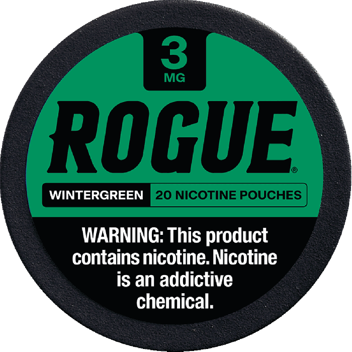 How to Use: Open the can by breaking the seal and lifting the lid. Place one Rogue Wintergreen 3mg pouch under your upper lip and leave it in place for up to 60 minutes. After use, remove and dispose of it responsibly.