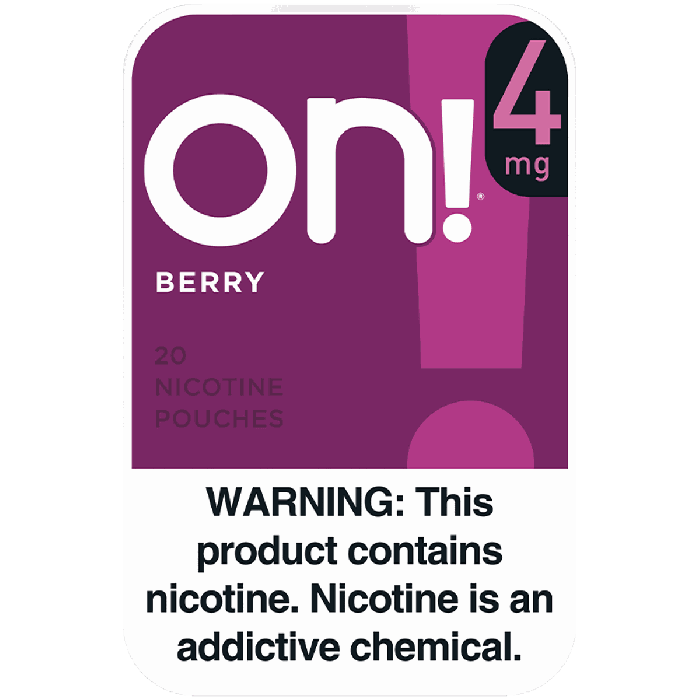 On! Berry 4mg nicotine pouches are made with tobacco-derived nicotine and come in a mini, dry format with a berry flavor. Each pouch contains 4mg of nicotine, and every can holds 20 pouches. The Berry flavor is also offered in two additional nicotine strengths: 2mg and 8mg. These pouches can be purchased online individually or in packs of 5, 10, 25, or 50 through Northerner.